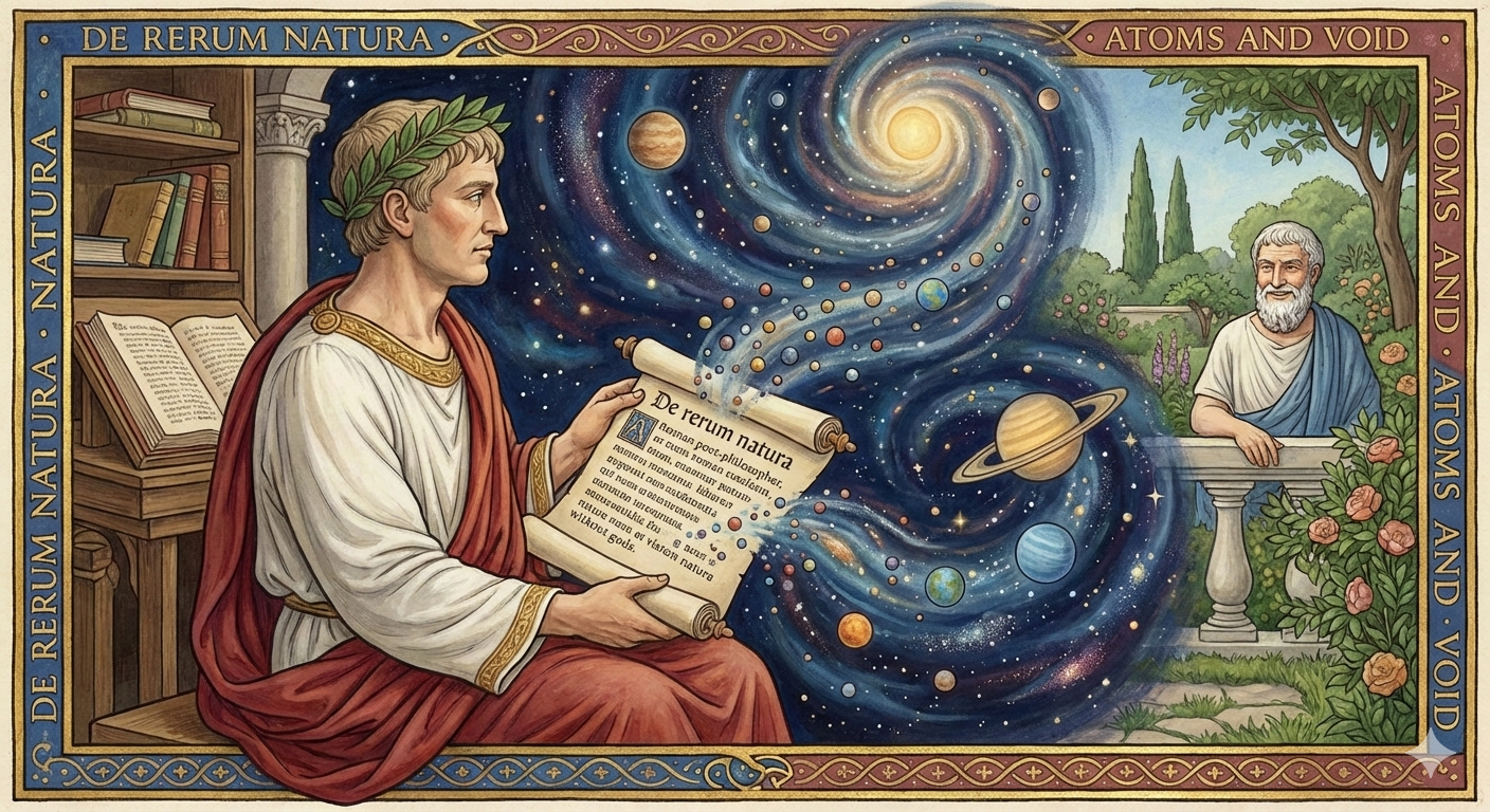1417年、千年近く失われていたルクレティウスの『事物の本性について』が、ポッジョ・ブラッチョリーニによって発見された。キリスト教が絶対的な価値観であった中世ヨーロッパにおいて、その発見は、やがて決定的な影響を世界に与えることになる。